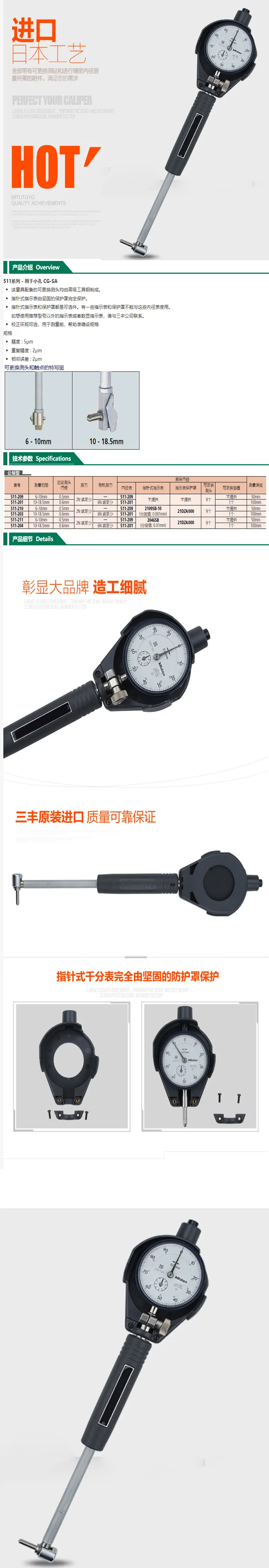 三丰 511-204 内径量表 内径百分表 10-18.5mm 适于小孔测量 计价单位:台